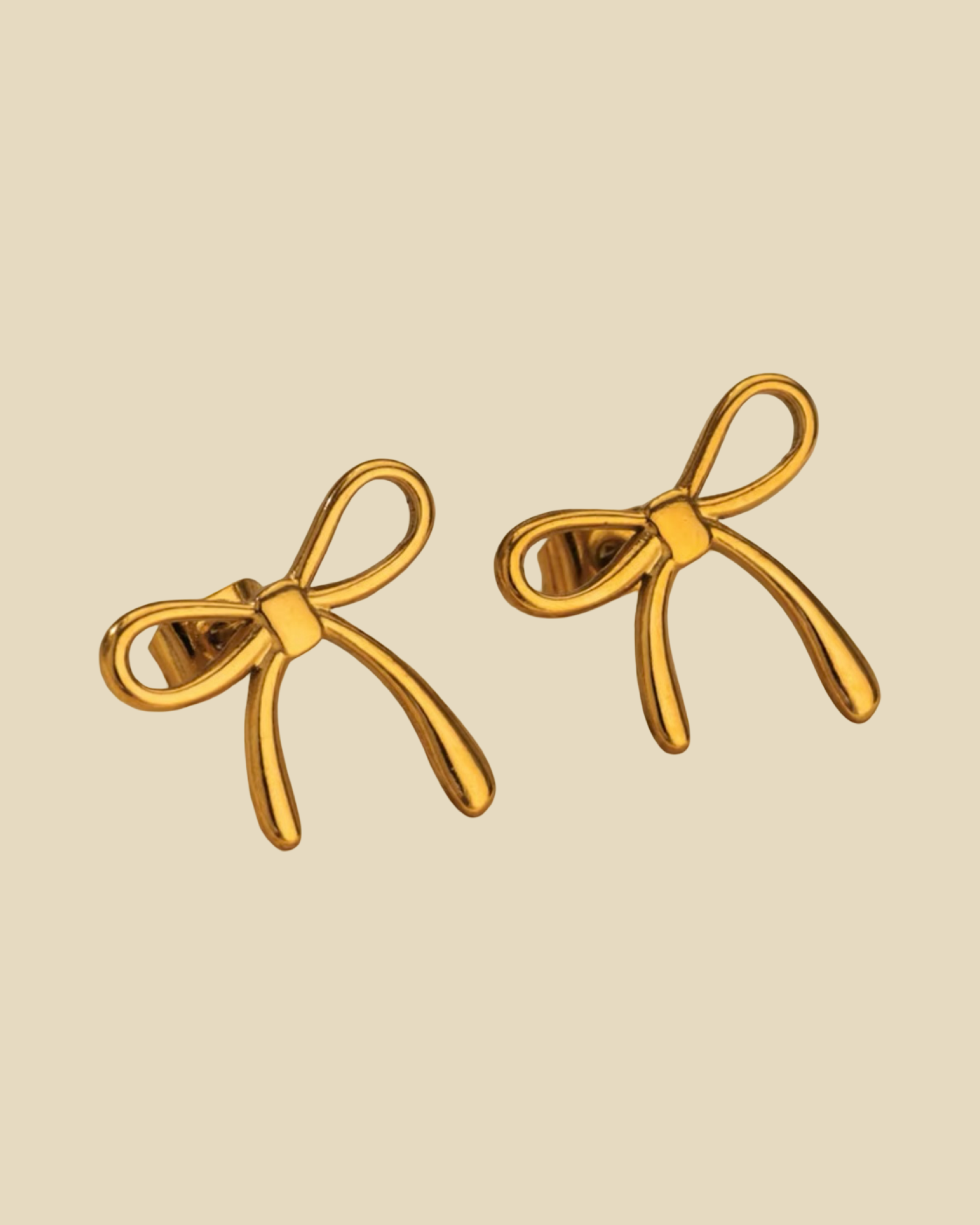 Add a touch of delicate femininity to any look with these charming bow studs. Crafted from polished 18k gold-plated stainless steel, the earrings feature a flowing, minimalist ribbon bow silhouette. Their smooth, contoured surface catches the light beautifully, making them a perfect, everyday accessory that is both subtle and sweet. Secured with a comfortable post-back closure. It is waterproof and anti tarnish.